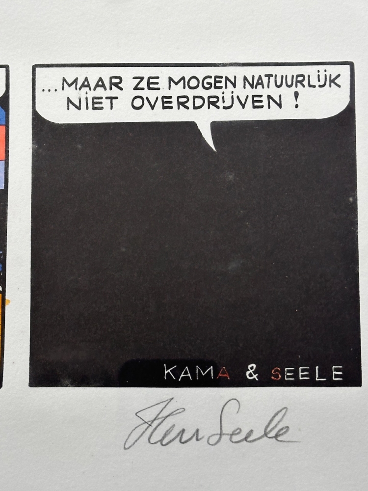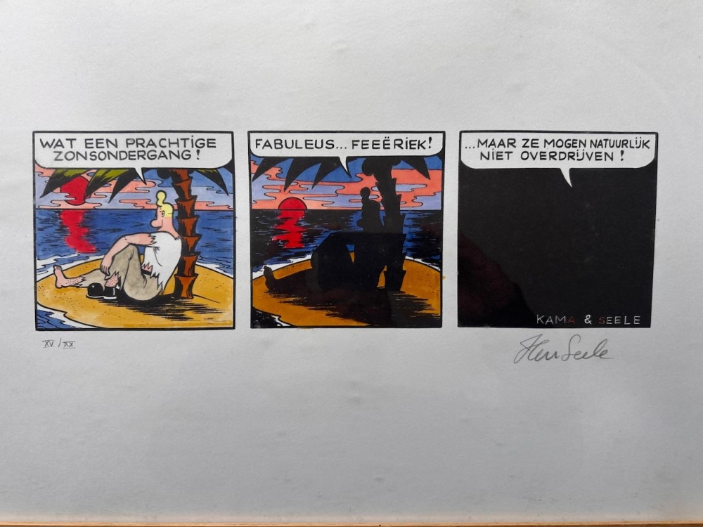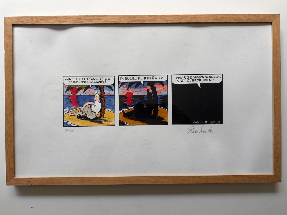 Prachtige cartoon van Kamagurka en Herr Seele : Cowboy Henk Gesigneerd door Herr Seele en met de hand bewerkt. Professioneel ingelijst. Cowboy Henk is een Belgische stripreeks, getekend door Herr Seele en geschreven door Kamagurka. Het is een absurde stripreeks die oorspronkelijk in de krant De Morgen liep, maar later door het blad Humo werd overgenomen. De serie werd van 1981 tot 2011 onafgebroken gepubliceerd