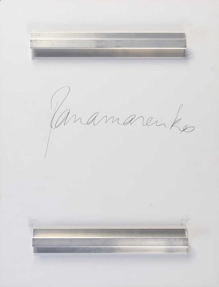 Print van "Pepto Bismo" op dibond, met de hand gesigneerd door Panamarenko op de achterkant.