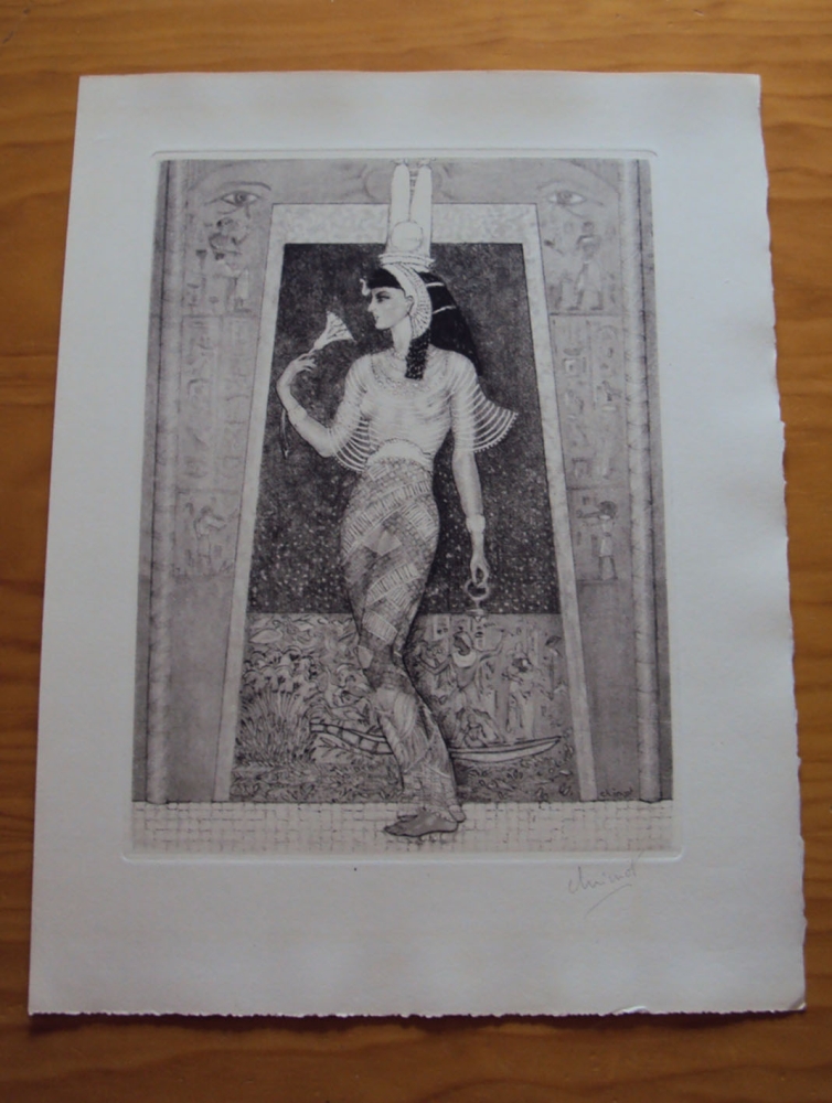 Edouard Chimot 1949 etching for the book by Pierre Louÿs 'Les Poemes Antiques'. Signed in crayon right hand side bottom 32,3 x 24,9. Artwork is in mint condition. Édouard Chimot's work has been offered at auction multiple times, with realized prices ranging from 200 USD to 9,806 USD, depending on the size and medium of the artwork. Since 2001 the record price for this artist at auction is 9,806 USD for Female Nudes, sold at Sotheby's London in 2012.