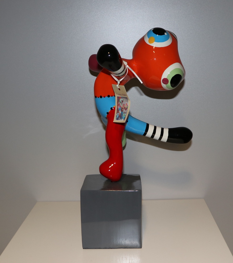 De TED is een trendy en kleurrijk katje die gemaakt werd in kunsthars. De sculptuur is met de hand beschilderd en zorgt steevast voor een verfrissing van uw interieur. 'Met mijn kunst wil ik bereiken dat mensen even stil blijven staan en genieten van het moment: de vormen en kleuren op zich in laten werken. De toeschouwer moet er blij van worden.'