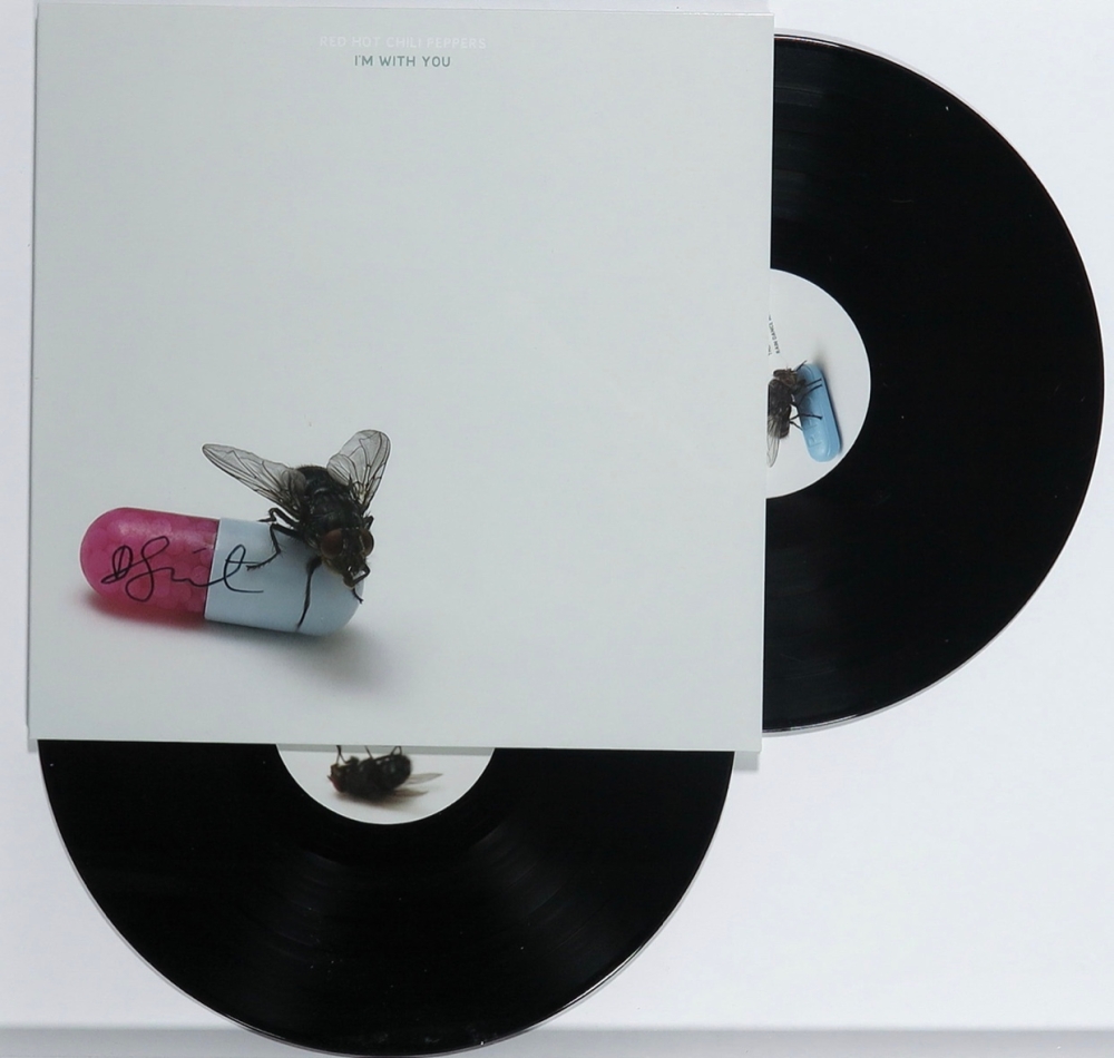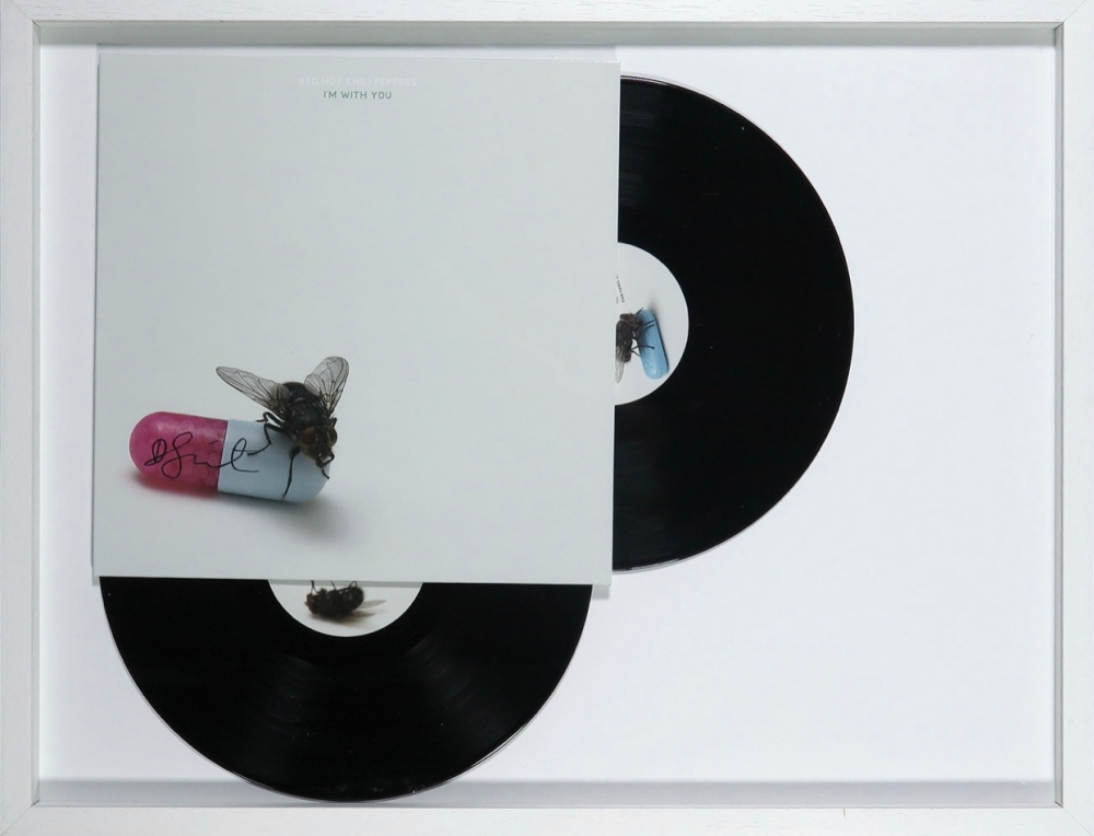 Zeer zeldzaam! I'm with you. Album van de Red Hot Chili Peppers met een door Damien Hirst ontworpen en gesigneerde LP-hoes. De LP en de hoes zijn ingelijst, dit is indien gewenst makkelijk te demonteren zonder de hoes en de LP te beschadigen.