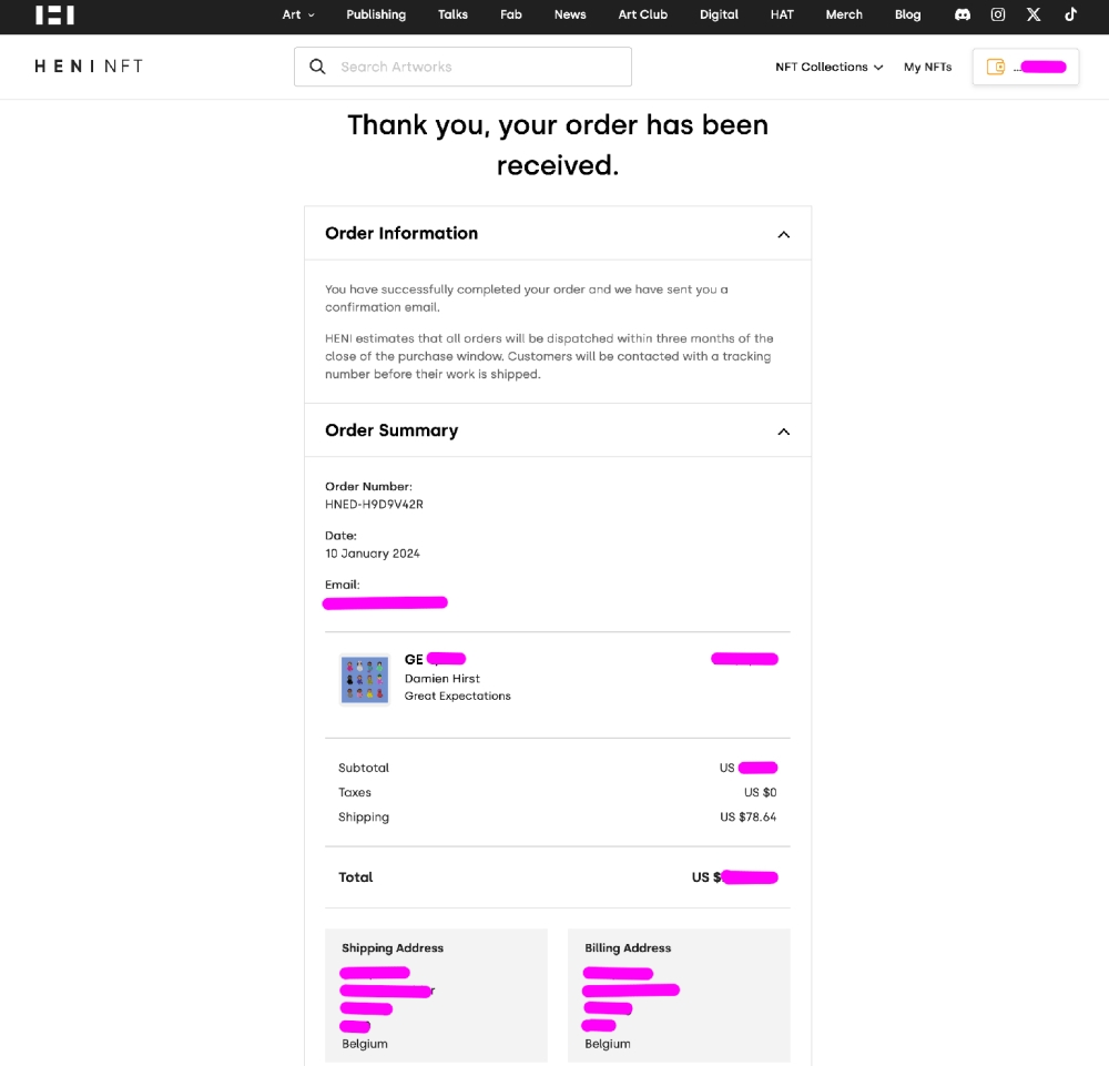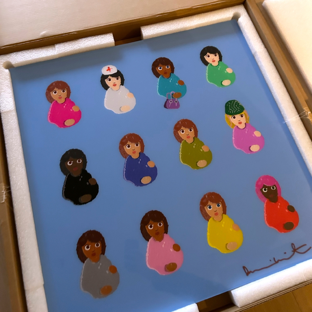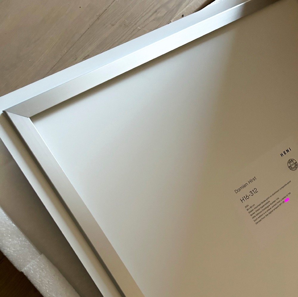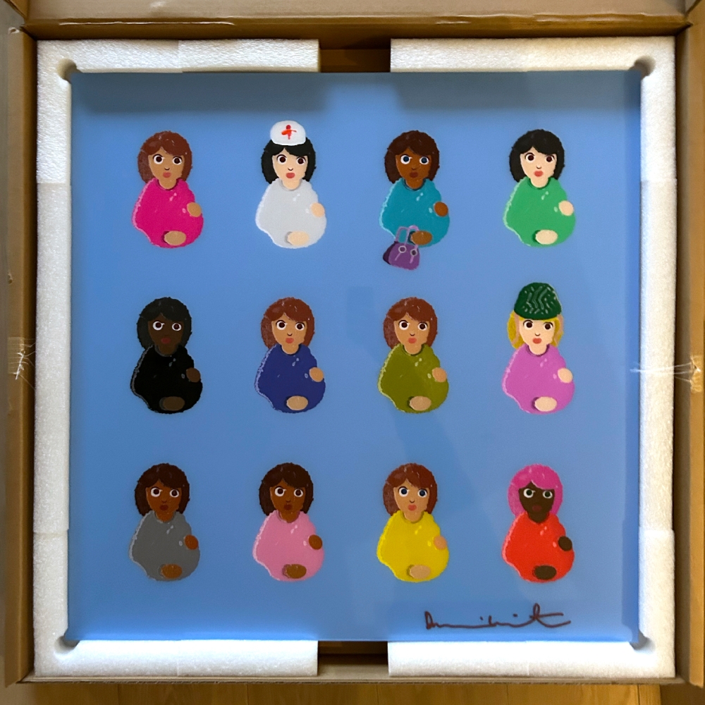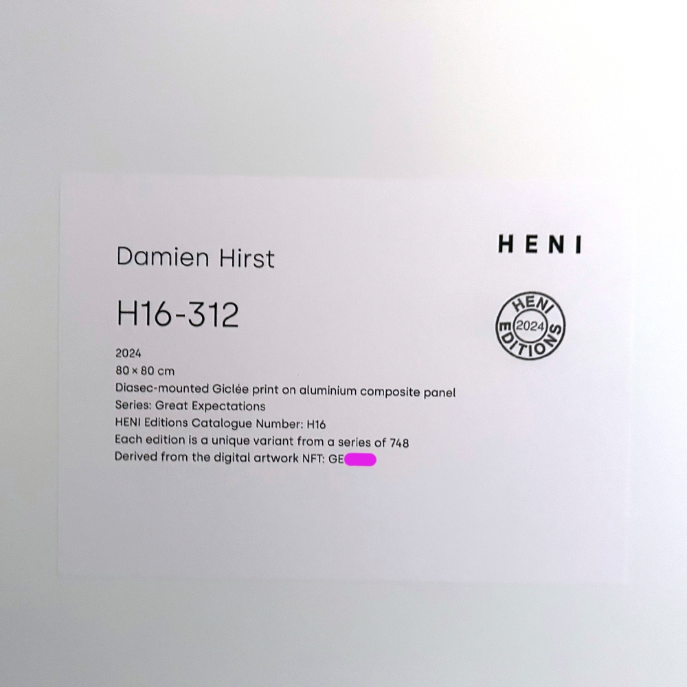 Great Expectations werd gestart als een verzameling van 10.000 unieke kunstwerken. Gebaseerd op de logica van Damien Hirst's generatieve Spot Paintings-serie (begonnen in 1986) en voortbordurend op de cover die hij ontwierp voor Drake's album "Certified Lover Boy" (2021), rangschikt elke NFT (non-fungible token) 12 emoji-achtige zwangere vrouwen in een strikt rasterformaat. Na 2 jaar in het proces werd de eenmalige kans geboden aan de eigenaars van de NFT's om deze om te zetten naar een fysieke en eenmalige print. Hierbij werden de eigenschappen van de NFT overgenomen, wat elke print uniek maakt. 748 eigenaars lieten hun NFT omzetten naar het unieke fysieke exemplaar. Dit is één van deze unieke kunstwerken Bovendien is elke print op de voorzijde handgesigneerd door Damien Hirst Een unieke kans om een origineel en uniek werk van de wereldberoemde engelse kunstenaar Damien Hirst te bemachtigen. COA bevestigd op de achterzijde van het kunstwerk (zoals voorzien door de uitgever) Eerste eigenaar. Een kopie van de originele factuur wordt meegeleverd Wordt volledig verzekerd verzonden in de originele doos Specificaties: - Series: Great Expectations (H16-312) - 2024 - 80 cm X 80 cm - Diasec-mounted Giclée print on aluminium composite panel - HENI Editions Catalogue Number: H16 - Elke editie is een unieke variant uit een serie van 748, afgeleid van het digtaal NFT kunstwerk: GE XXX