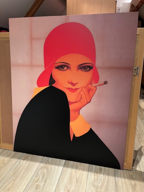 Prachtige, grote print van het meisje op de pakjes van de Belga sigaretten. Print op Dibond (aluminium plaat) door bekende fotograaf Nietsche. Slechts 4 exemplaren gemaakt en dit is de laatste uitgave. Bijzonder decoratief.