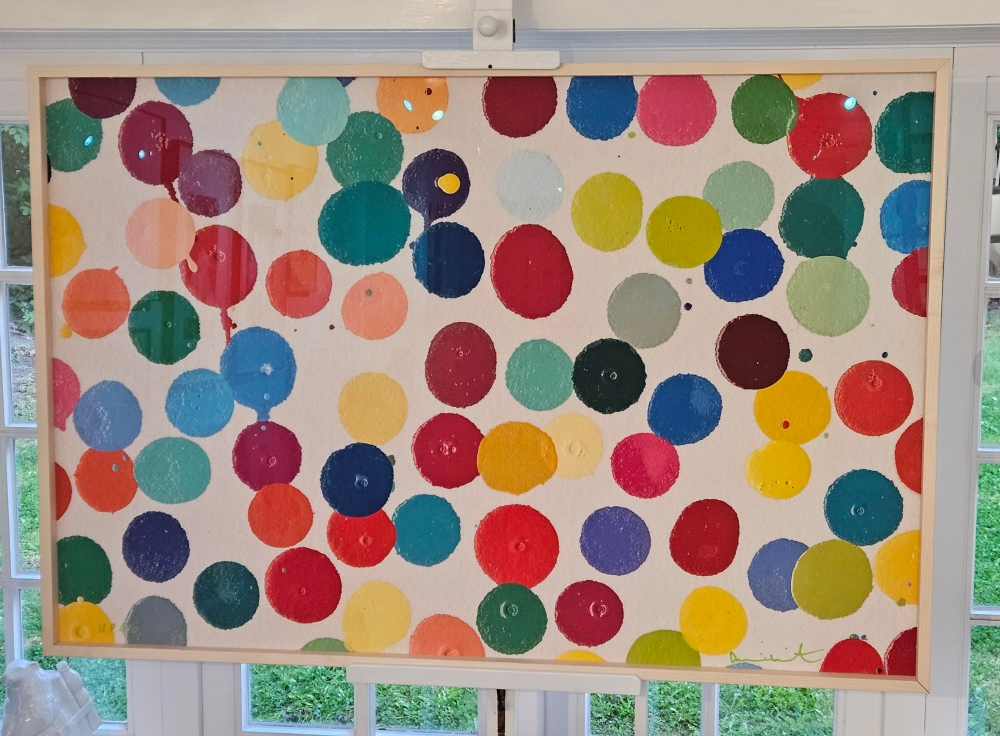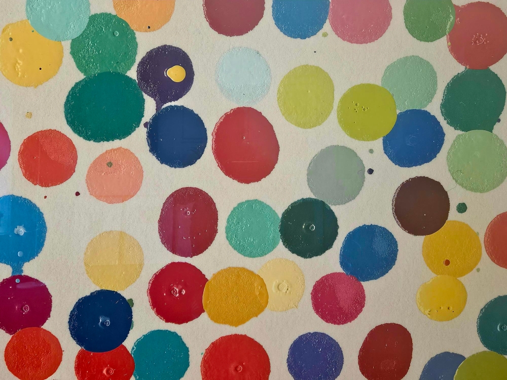 Originele print uit de Currency project van Damien Hirst. Bijzonder groot formaat! 150 x 100 cm. Voor dit project werden 1000 unieke prints gemaakt. Iedere print is dus uniek. Gesigneerd en genummerd op 1000 exemplaren. Ingelijst met ontspiegeld museumglas.