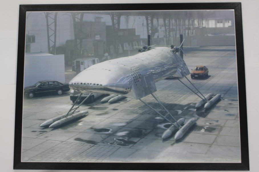 In stevig groot kader. Grote affiche/poster van Panamarenko's Scotch Gambit, één van Panamarenko's legendarische objecten. De vliegboot werd pas in 1999 definitief afgewerkt, alhoewel de eerste tekeningen dateren uit 1966. Het uiteindelijke toestel is zestien meter lang, zes meter hoog en negen meter breed. Ref. lit. Boek posters Ludion: poster n°69 pag. 74 en 88. De affiche werd opgesteld in functie van Panamarenko's exposities in het jaar 2000, ondermeer in de Hayward gallery london en Ronny Van De Velde gall. in Antwerpen. Affiche/poster in zeer goede staat. Ten gevolge van de omvang en kwetsbaarheid van dit werk is levering enkel mogelijk in Oost-en West-Vlaanderen en Antwerpen (1 euro per km). Afhaling te Gent op een voor koper geschikt moment volgens afspraak (is gratis)