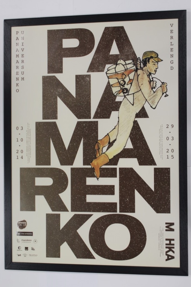 In stevig groot kader. Zeldzame zeer grote affiche/poster van Panamarenko's overzichtsexpositie Universum. Affiche/poster in perfecte staat. Ten gevolge van de omvang en kwetsbaarheid van dit werk is levering enkel mogelijk in Oost-en West-Vlaanderen en Antwerpen (1 euro per km). Afhaling te Gent op een voor koper geschikt moment volgens afspraak (is gratis)
