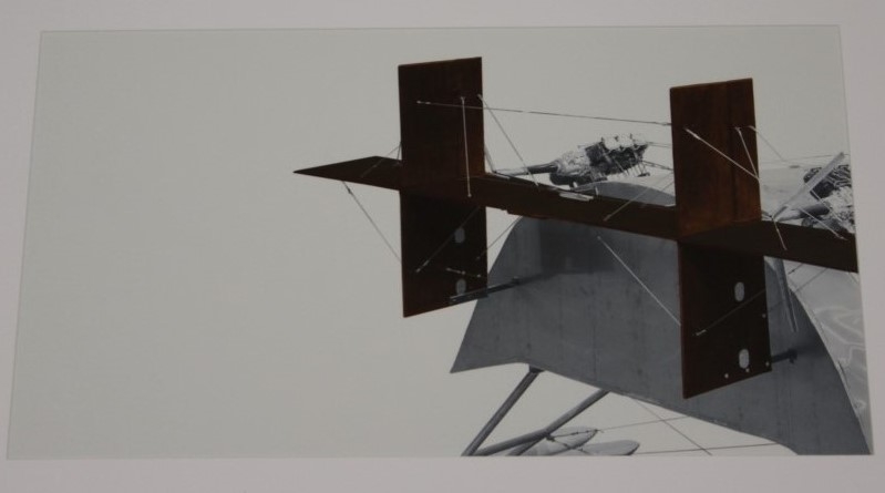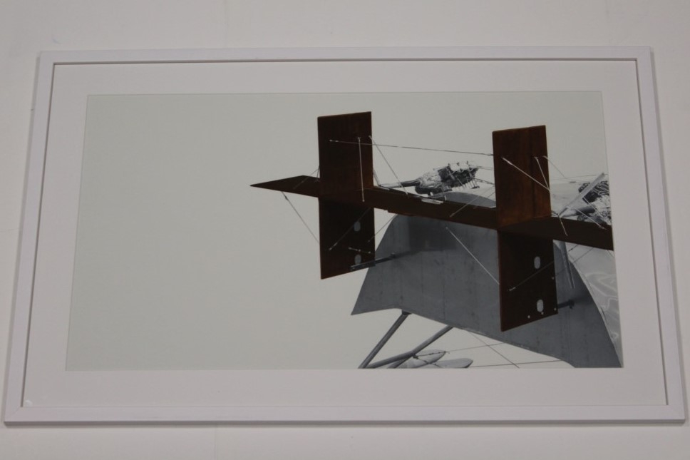 UV-glans inkjet print - Scotch Gambit- editie proof van Galerij Deweer "Scotch Gambit, from table to steel" - in professioneel kader. Eén van Panamarenko's legendarische objecten, de vliegboot, werd pas in 1999 definitief afgewerkt, alhoewel de eerste tekeningen dateren uit 1966. Het uiteindelijke toestel is zestien meter lang, zes meter hoog en negen meter breed.