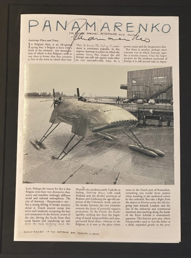 Zeldzaam gesigneerde uitnodiging uit 2001 gesigneerd door Panamarenko Professioneel ingelijst Maten met lijst 46 x 40 cm Panamarenko, de artiestennaam van Henri Van Herwegen (Antwerpen, 5 februari 1940 – Brakel, 14 december 2019) was een Belgisch beeldhouwer.[1] Hij wordt beschouwd als een van de voornaamste Belgische beeldhouwers uit de tweede helft van de 20e eeuw. Hij maakte veel assemblages die met vliegen te maken hebben.