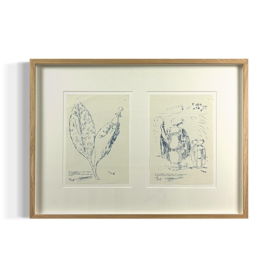 Serie van tweel stencils op velin door René Magritte. Gesigneerd in de plaat door de kunstenaar en gesigneerd door de uitgever. Genummerd op 200 exemplaren. Professioneel ingelijst. Verzekerde verzending alsook opgalen mogelijk.