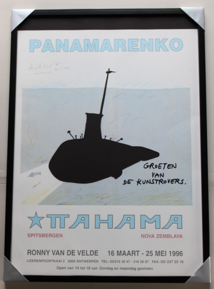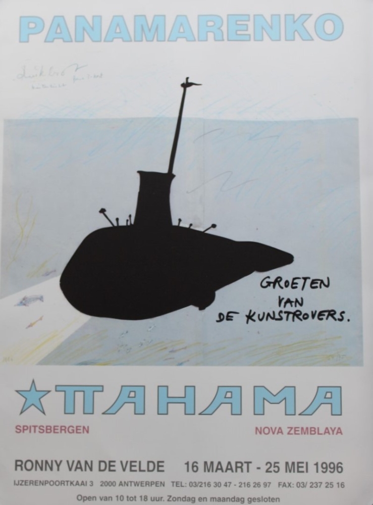 Zeldzame en genummerde 64/75 editie, onderaan zwarte stift door kunstrovers-collectief, zie foto De duikboot werd door het collectief geroofd= uitgestansd (zie zwarte achtergrond op foto) - Speciale uitgave.