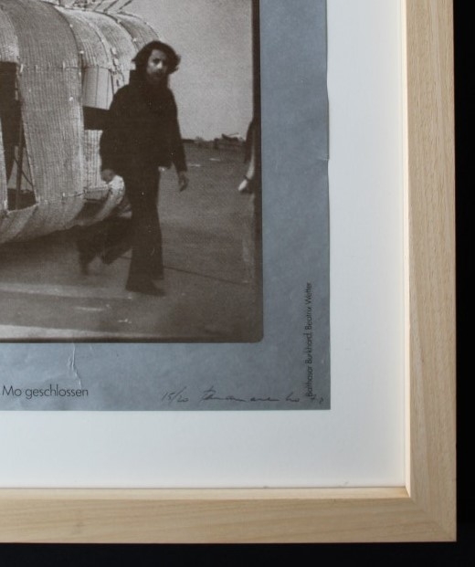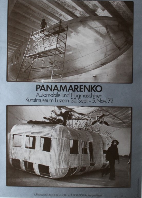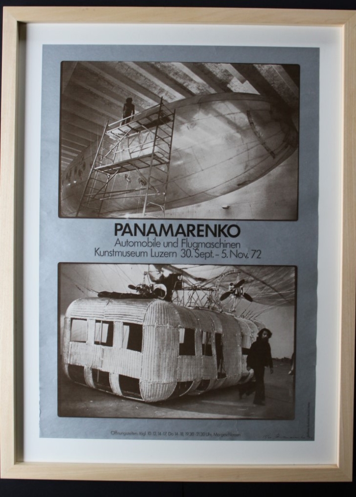 Handgesigneerd en handgedateerd "1972" door Panamarenko. Afbeelding Panamarenko bij zijn Aeromodeller luchtschip. Eén van de eerste multiples van Panamarenko, grote en zeldzame zeefdruk in zeer kleine oplage. In prof. kader met passe partout. Uitgegeven Jean-Christophe Ammann t.g.v. gelijknamige tentoonstelling in kunstmuseum Luzern, Kunsthalle Düsseldorf en het Kunstverein Stuttgart. Lit. Multiple n° 11 pag. 22-23 boek Multiples 1 uitg. gal. Jamar. Ten gevolge van de omvang en kwetsbaarheid van dit werk is levering enkel mogelijk in Oost-en West-Vlaanderen en Antwerpen (1 euro per km). Afhaling te Gent op een voor koper geschikt moment volgens afspraak.