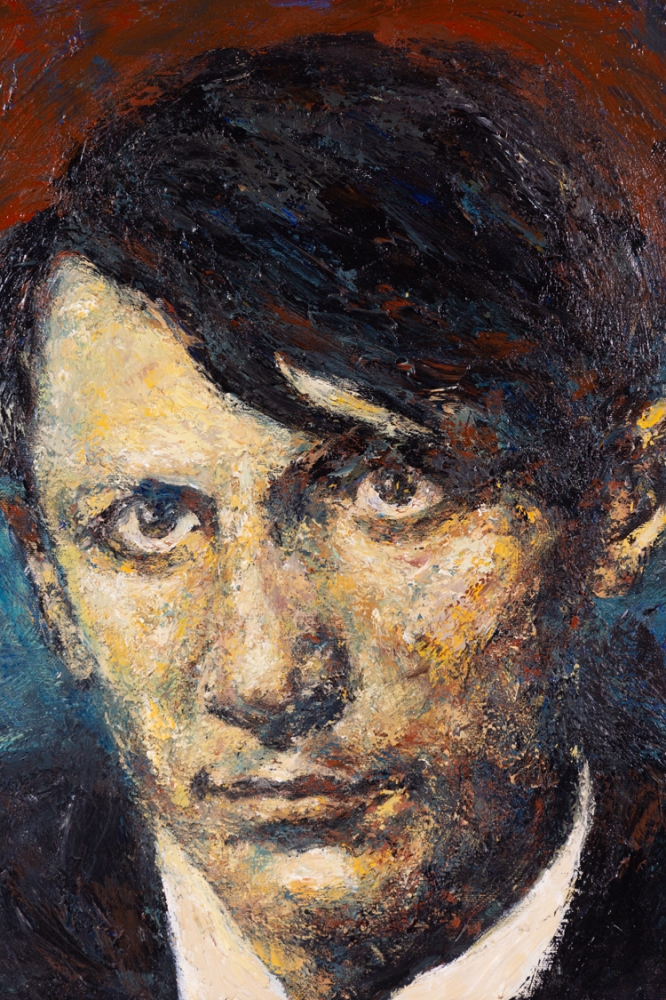 Uniek schilderij van Peter Heylands met olieverf waarop een jonge Pablo Picasso wordt afgebeeld.