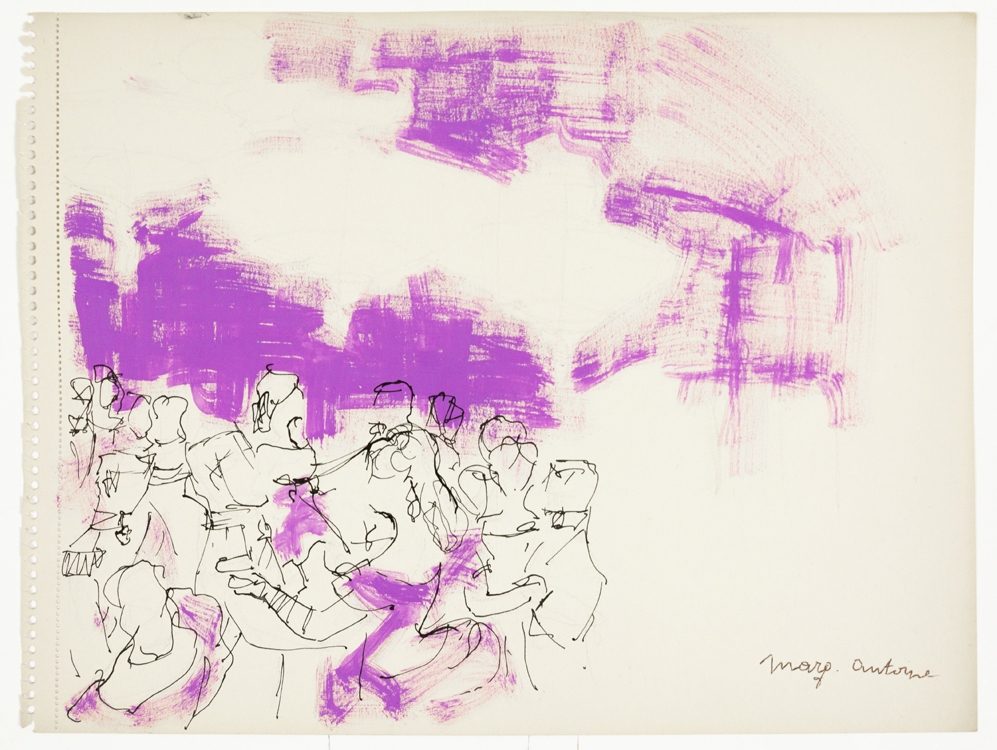 Een tekening van Marguerite Antoine met de hand gesigneerd.