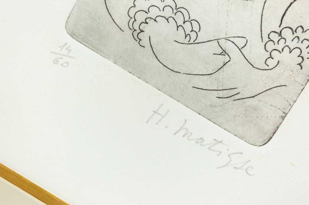 Een ets van franse kunstenaar Henri Matisse binnen een oplage van 60 stuks. Dit is het 14e exemplaar.