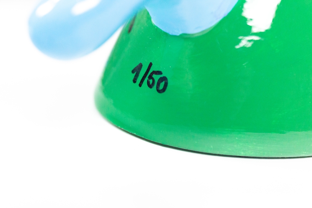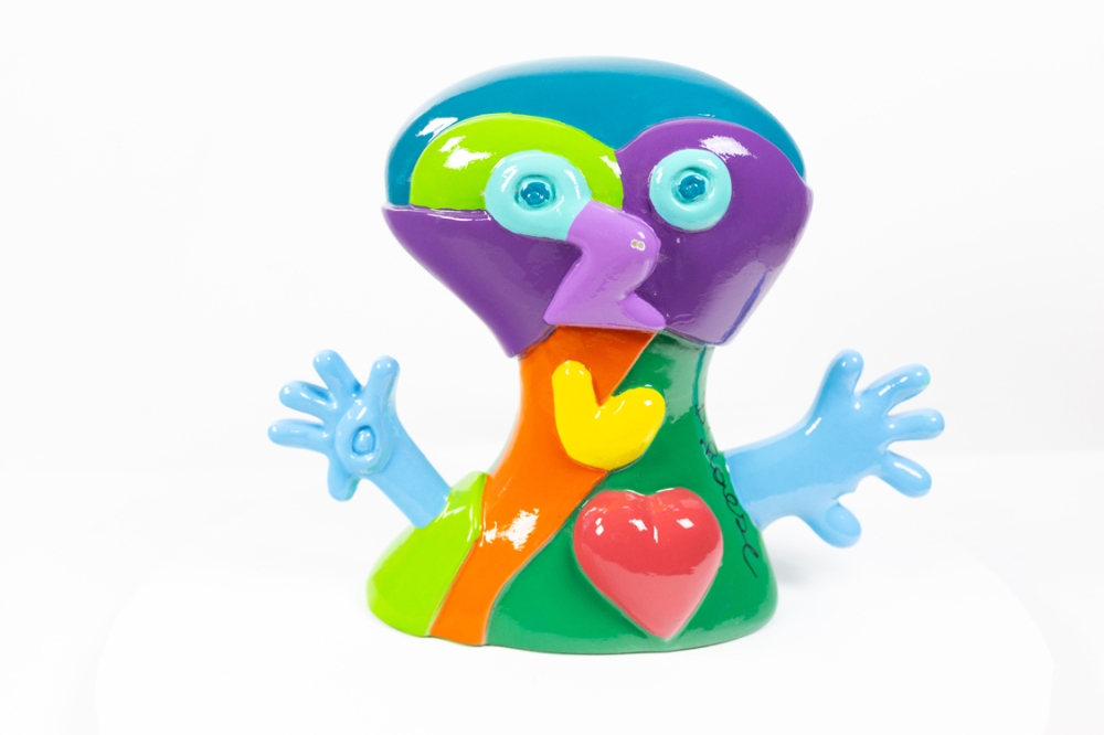 Een sculptuur van Hannes D'Haese gemaakt uit kunsthars, in de vorm van veelgebruikt figuur uit zijn schilderijen.