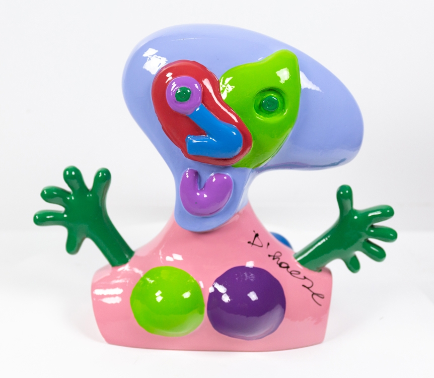 Een sculptuur van Hannes D'Haese gemaakt uit kunsthars, in de vorm van veelgebruikt figuur uit zijn schilderijen.
