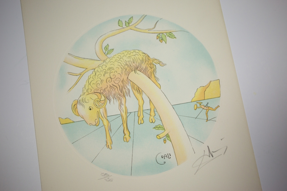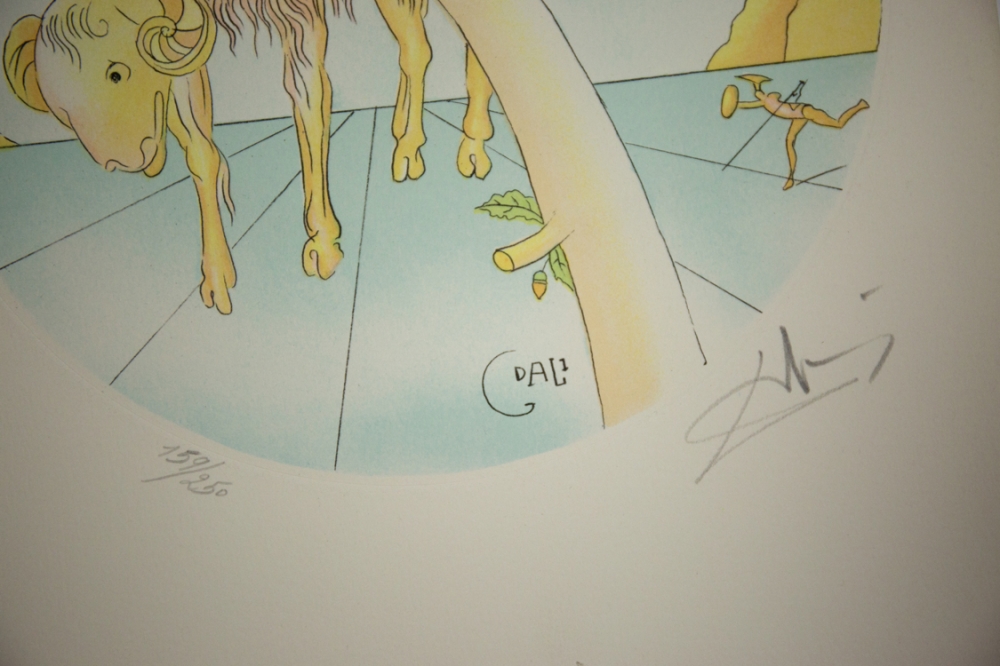 Een lithografie van Salvador Dali uit de zodiac reeks. Deze reeks bestaat uit twaalf werken, die elk een sterrenbeeld voorstellen. Dit werk is één uit deze reeks.