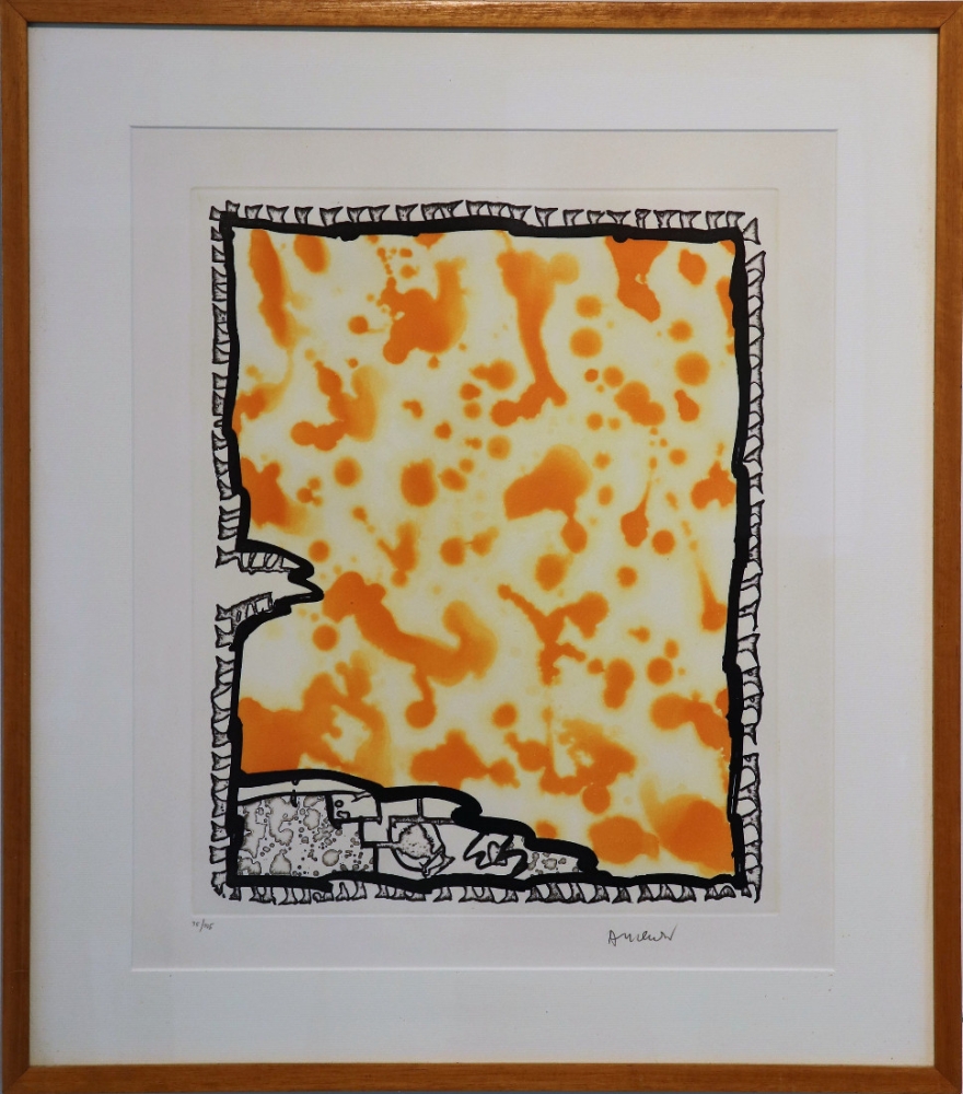 Lithografie met aquatint uitgegeven op 125 exemplaren (nummer 35/125). Uit het portfolio Honoré de Balzac - Trité des Excitants Modernes. Dit is het werk met het meeste kleur en wordt beschouwd als uit beste werk uit de portfolio. Getekend en genummerd in potlood door Pierre Alechinsky. Het werk is ingelijst in een houten kader afmetingen inclusief de lijst is 63cm x 54cm. Het werk is in perfecte staat.