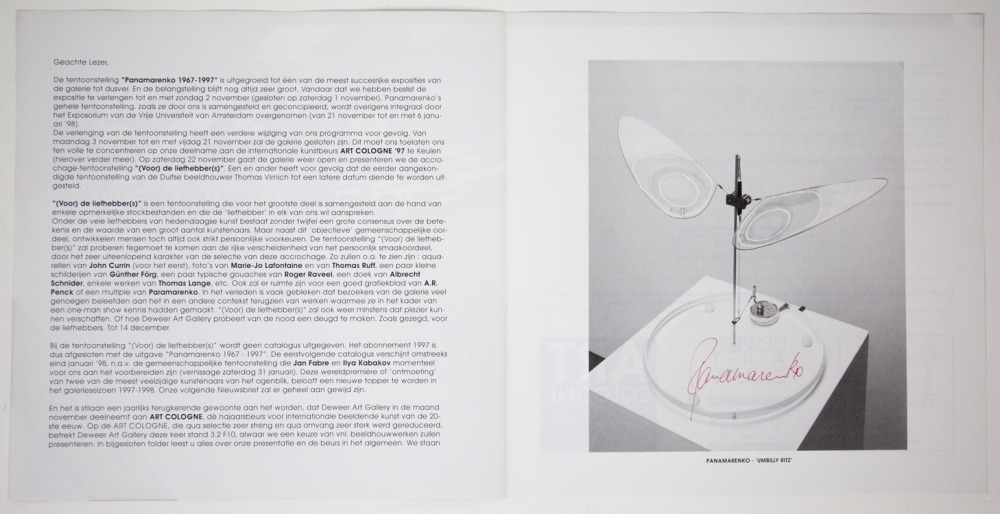 Brochure voor een tentoonstelling van Panamarenko i.s.m. Deweer art gallery uit 1997.