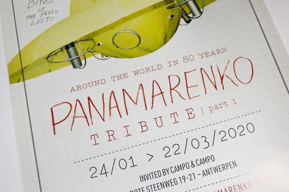 Affiche voor de laatste tentoonstelling van Panamarenko in Antwerpen i.s.m Campo & Campo.
