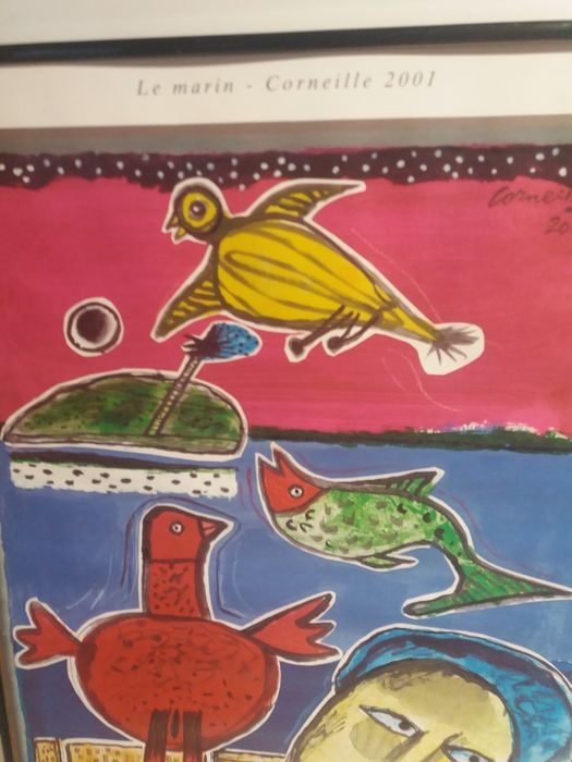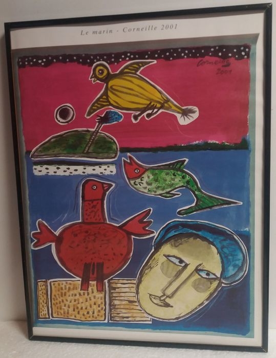 Le marin Affiches 2001 Bewaard achter glas in op maat gemaakte fraaie lijst . rechts boven gesigneerd in zijn eigen handschrift Corneille 2001 en Aan de achterkant gesigneerd in zijn eigen handschrift . veel succes Corneille nog nooit gepubliceerd was bedoeld voor een openingsgala van Corneille Afmeting afbeelding: 40 x 30 cm Deze Affiches is niet in de handel verschenen Word goed verpakt voor verzending Met track en trace