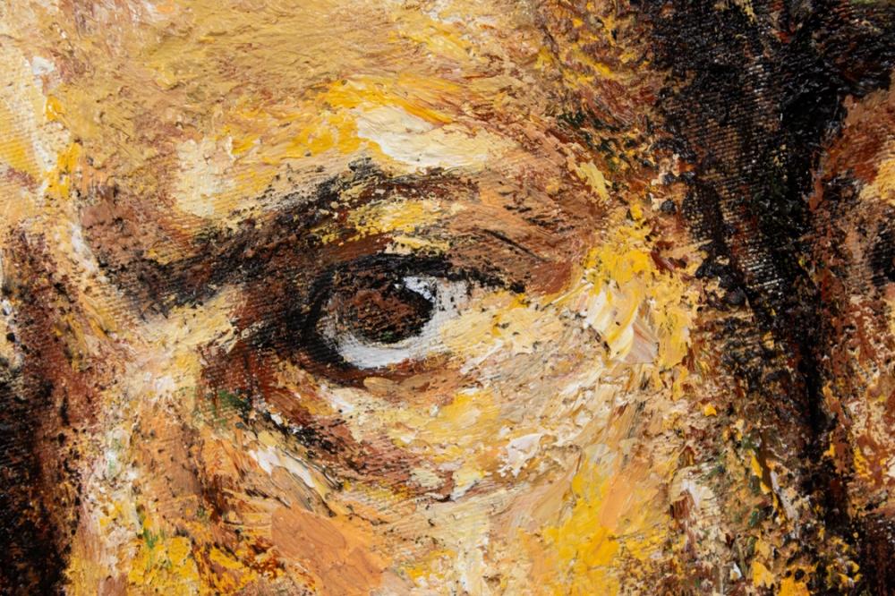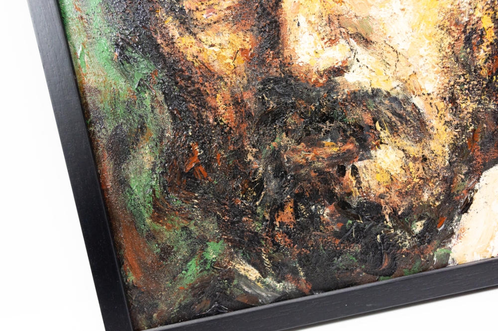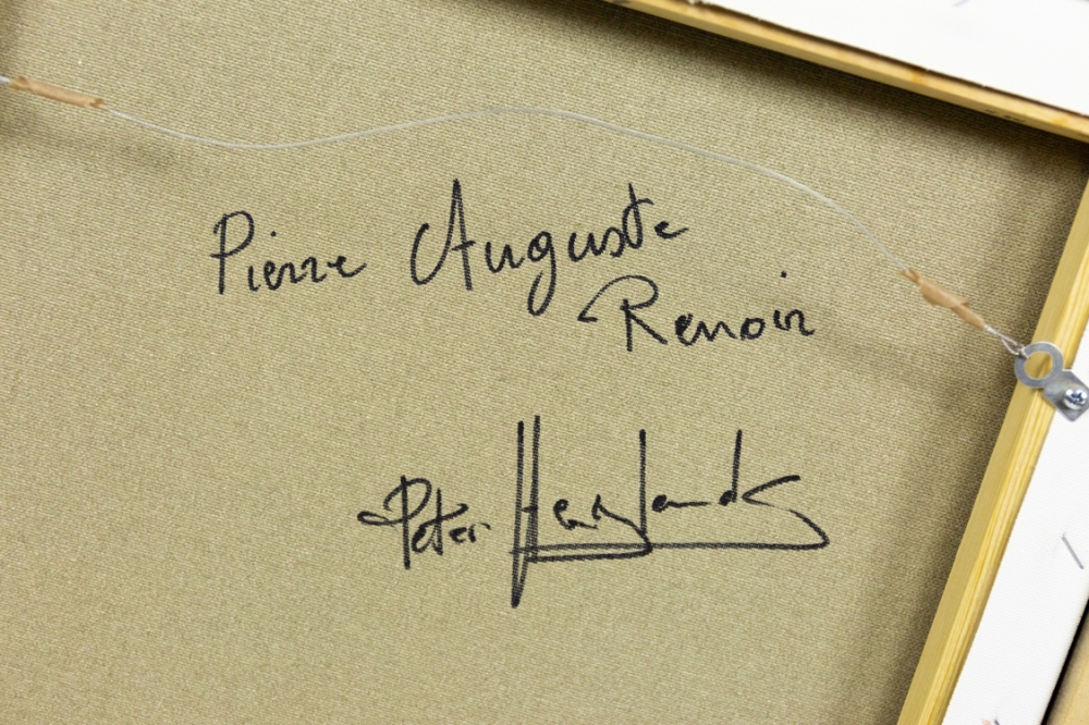 Een origineel schilderij van Peter Heylands. Hierop is een portret van kunstenaar Pierre Auguste Renoir afgebeeld. Het werk heeft een interessante dynamiek en inkleuring.