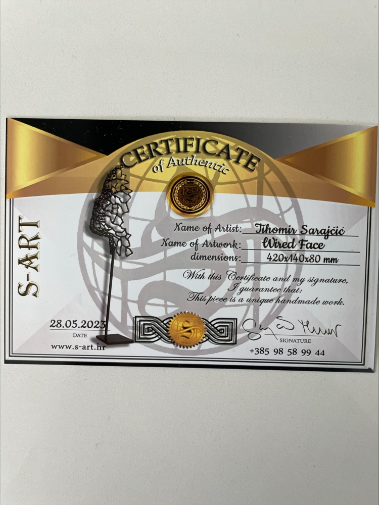 Uniek kunstwerk in metaal van de Kroatische kunstenaar Tihomir Sarajcic.Het werk bevindt zich in nieuwstaat en is voorzien van een echtheidscertificaat. Alle sculpturen zijn met de hand gelast en bewerkt, het zijn geen metalen gietstukken. Het proces van het maken van sculpturen is dat ik stukken metaal of draad in de gewenste vorm aansluit en het vervolgens allemaal aan elkaar las. Ik schilder het zwart, goud, koper, zilver, of laat de sculptuur gewoon in de natuurlijke kleur van het metaal.