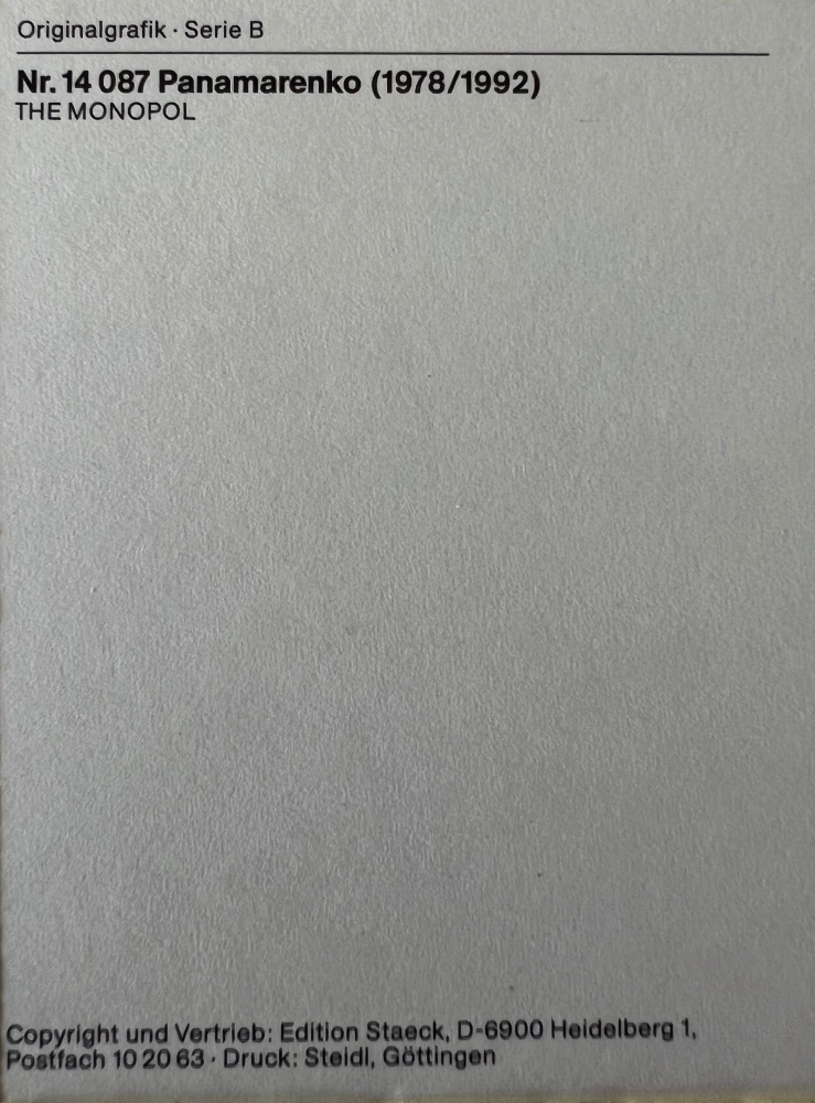 Uitgegeven in kleine oplage door Staeck Gesigneerd in zwarte stift. De Monopool (vaak getiteld als The Monopool) is een fascinerend concept en kunstwerk van de Belgische kunstenaar Panamarenko (Henri Van Herwegen, 19402019). Zoals veel van zijn werk, balanceert dit project op de grens tussen poëtische fantasie en pseudowetenschap. Het Concept: Surfen op Magnetisme Panamarenko was geobsedeerd door alternatieve manieren van voortbeweging die de wetten van de zwaartekracht tarten. De Monopool verwijst naar zijn theoretische idee voor een ruimteschip dat zich voortbeweegt met behulp van magnetische velden: Magnetische Pool: Het idee was om een voertuig te maken waarin één magnetische pool (een monopool) "opgesloten" kon worden. Aandrijving: Door deze geïsoleerde pool te gebruiken, zou het schip kunnen "surfen" op de natuurlijke magnetische velden die overal in de ruimte aanwezig zijn, zonder dat er brandstof nodig is. Wetenschappelijke knipoog: In de theoretische natuurkunde is een magnetische monopool een hypothetisch deeltje (een magneet met slechts één pool). Hoewel wetenschappers hier al decennia naar zoeken, maakte Panamarenko er een artistiek voertuig van. Poskaartformaat zie fotos voor en achterkant.