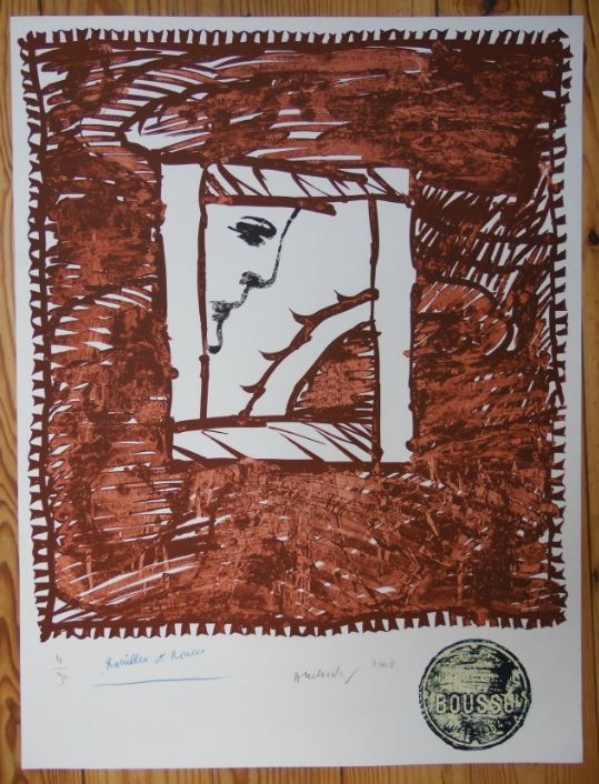 mooie grote lithografie uit 2005 van Pierre Alechinsky (1921), de laatste levende oprichtende kunstenaar van de COBRA beweging. Genummerd, getiteld en met potlood ondertekend niet ingelijst en in perfecte staat.