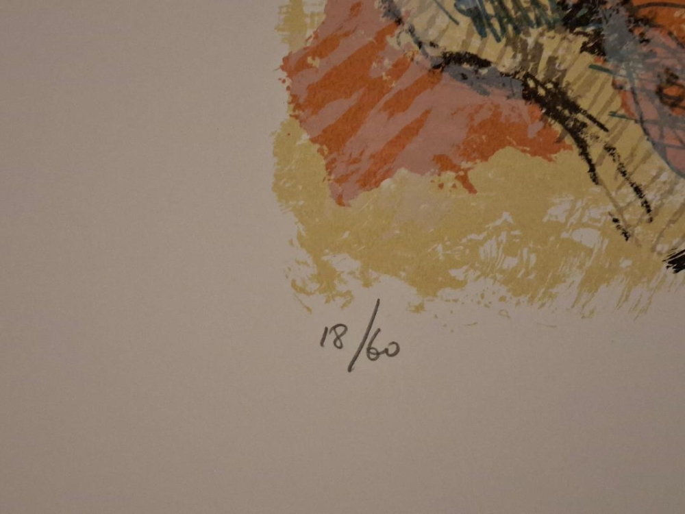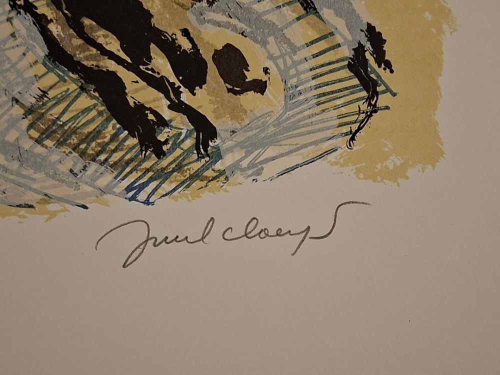 Prachtige grote en zeldzame kleurenzeefdruk van Juul Claeys. Gesigneerd en genummerd op 60 exemplaren. dit betreft een werk uit zijn latere periode waar hij al afstand had genomen van de Nieuwe Visie en geëvolueerd was naar het abstract expressionisme