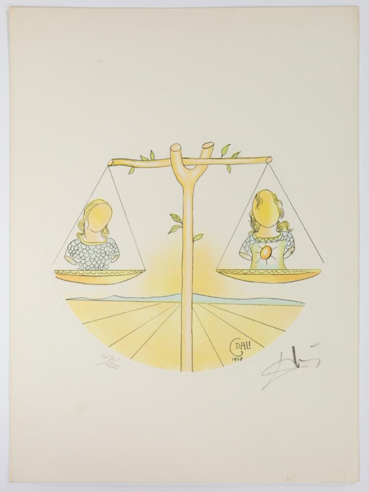 Een lithografie van Salvador Dali uit de zodiac reeks. Deze reeks bestaat uit twaalf werken, die elk een sterrenbeeld voorstellen. Dit werk is één uit deze reeks.