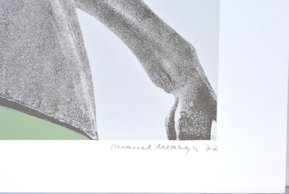 Originele kleurenzeefdruk van Marcel Maeyer - Gesigneerd en genummerd 214/250 in potlood - Bijgevoegd: bijhorende tekst op een afzonderlijk blad - Uitgever: Peter Bekaert, 1977 - In puntgave staat, nooit voorheen ingelijst, steeds in de grafiekmap bewaard - Wordt professioneel ingepakt en verzekerd verzonden incl. track en trace