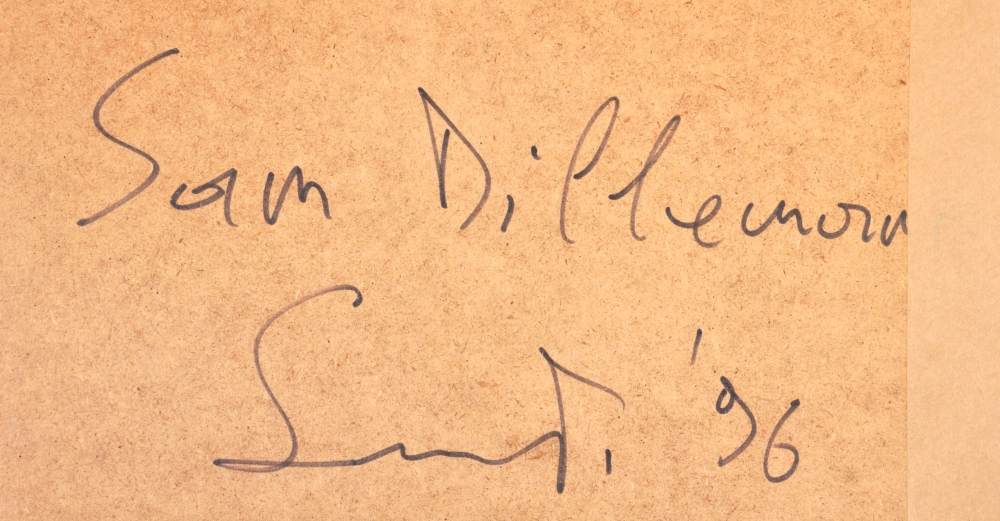 Origineel werk - gemengde techniek (houtskool, gouache, wasco en potlood) op papier - getekend en verso getekend en gedateerd 1996 - professioneel ingelijst - galerieprijs: 6500 euro - Sam Dillemans (1965) is een Belgische schilder bekend om zijn krachtige, expressieve schilderijen met vaak donkere kleuren en dikke verflagen. Hij maakt figuratief werk zoals portretten, landschappen en stillevens, en laat zich inspireren door de traditie van de Vlaamse schilderkunst.