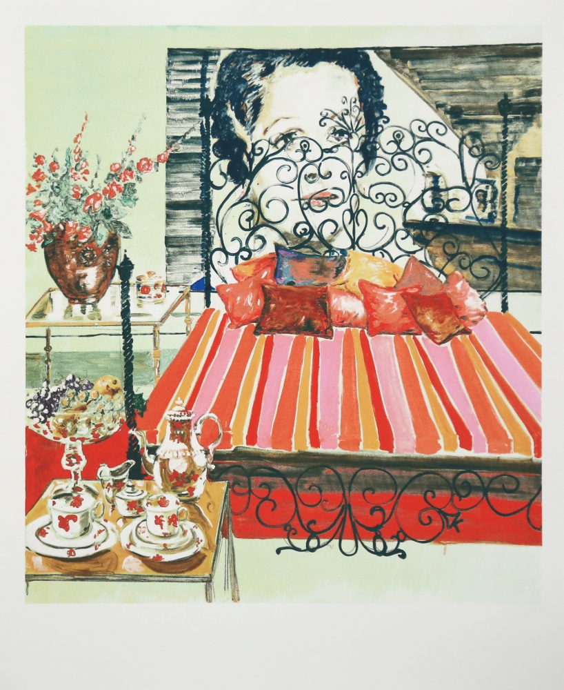 Gesigneerd en genummerd Editie op 60 exemplaren Originele zeefdruk op BFK Rives 250 g lompenhoudend, handgeschept papier Gedrukt bij Seriart, in samenwerking met Roger Vandaele, Antwerpen De hamerprijs (geboden bedrag/hoogste bod) wordt integraal geschonken aan ORKA vzw. Alle werken zijn af te halen in Aalst. La beauté incessible (de onoverdraagbare schoonheid) is gebaseerd op Jan Van Imschoots schilderij The End uit 2008. Voor dit werk liet de kunstenaar zich inspireren door de films van cineast Luis Buñuel. Net als de surrealistische filmmaker speelt hij met de grenzen tussen werkelijkheid, verbeelding, herinnering en fantasie. Ofschoon we ons in een knus en burgerlijk interieur bevinden doet de kamer bevreemdend aan, omwille van het enorme portret van Catherine Deneuve die de hoofdrol speelde in Buñuels Belle de Jour en Tristana. Het portret aan de muur toont Deneuve in al haar menselijkheid, maar ook op een moment waarin ze aan de diepste gevoelens van haar personage gestalte geeft. Het Spaans-oriëntaalse bed is een knipoog naar Buñuel, terwijl de bloemen, het fruit en de koffietafel teruggrijpen naar de stillevens uit de Vlaamse barok taferelen die zowel rijkdom als erotiek en vergankelijkheid uitbeelden.