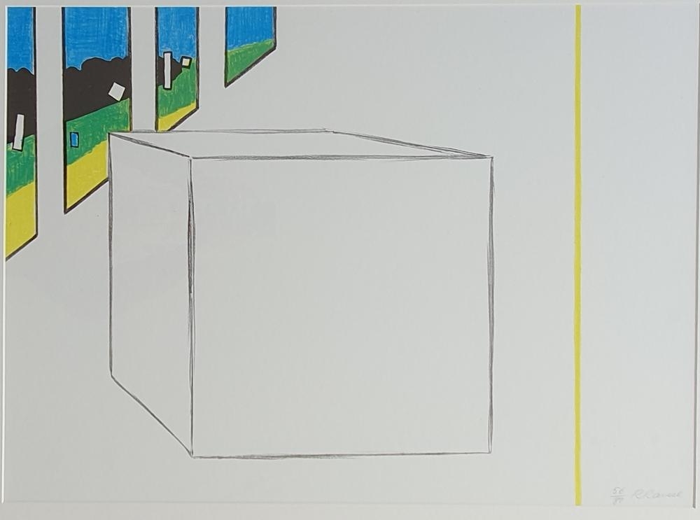 Prachtig ingelijste kleurenlithografie van de Belgische kunstenaar Roger Raveel. Het bij de kubus aangeboden werk is nummer 23 van het werk Genesis uit 1969. Het werk Genesis werd door Raveel als een van zijn beste werken beschouwd. Hiervoor werkte hij samen met de dichter Hugo Claus. Bij de litho is het bijbehorende gedicht van Hugo Claus bijgeleverd. Het komt zelden voor dat het werk en het gedicht bij elkaar zijn gebleven. Het werk is nooit ingelijst en verkeert in zeer goede staat. Het werk is gesigneerd en genummerd. Het werk is beschreven in het grafische werk onder nr. 14.23 op pagina 26 en 35. Unieke kans om dergelijk eersteklas werk te verwerven.