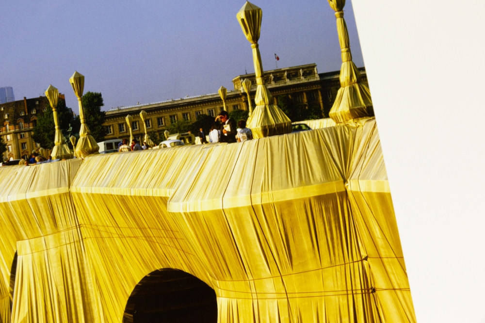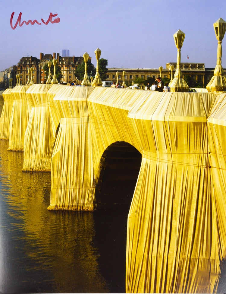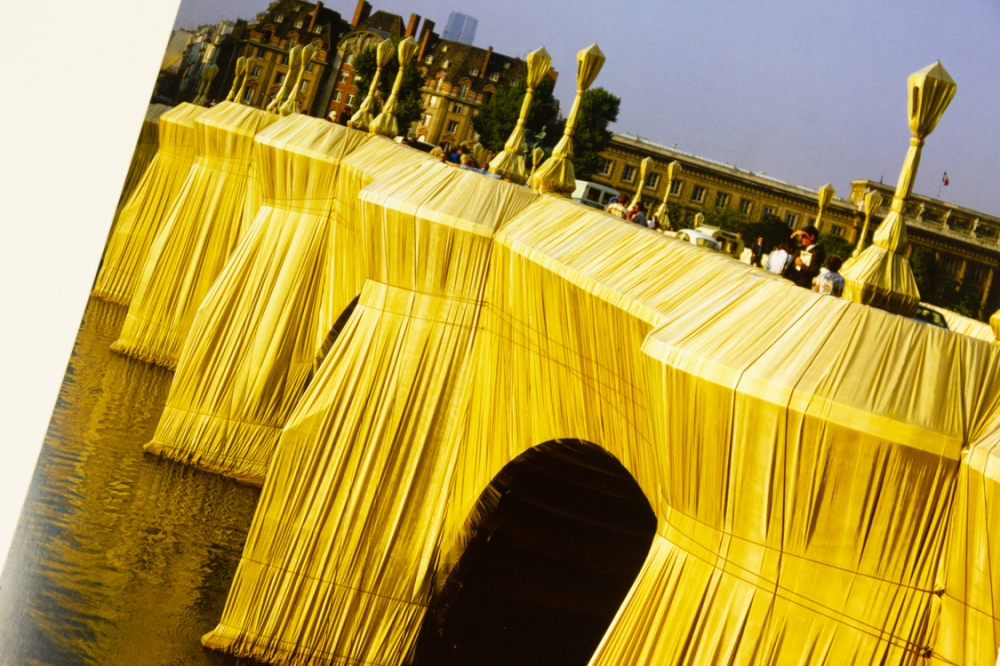 Een offset van een foto van één van Christo's werken in Parijs, jaren '75-'85. Voor dit werk werd 40.876 m² gevlochten polyamide stof en 13 kilometer touw gebruikt Pont Neuf in te pakken.