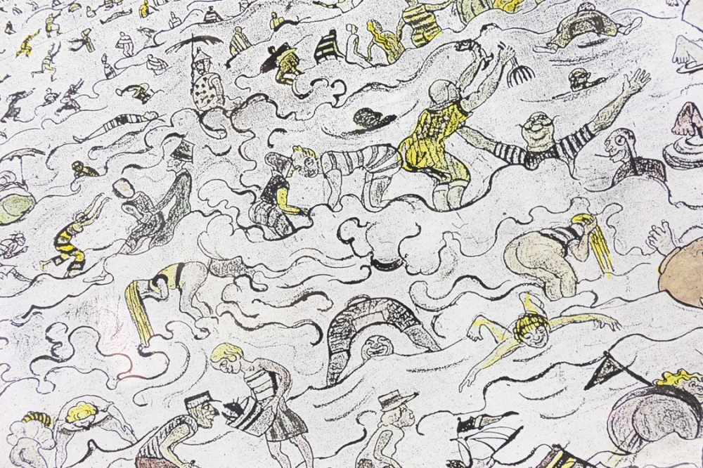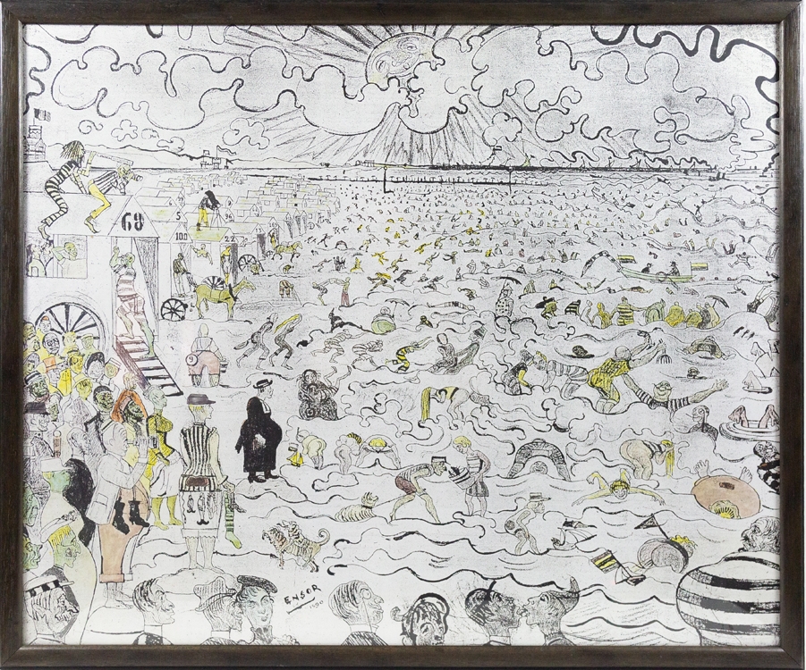 Ingekleurde affiche van "De baden in Oostende", een vrij recente, ingekleurde reproductie van één van zijn werken uit 1890.