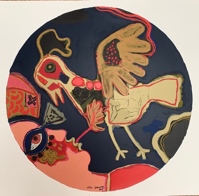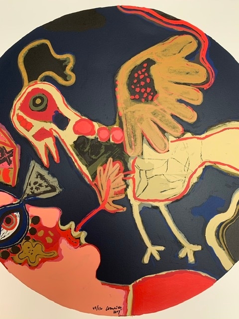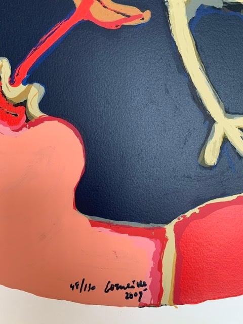 Mooie zeefdruk van de kunstenaar Guillaume Corneille. Een werk met prachtige kleuren. De titel is Libre Oiseau en is op 130 exemplaren gemaakt waarvan dit nummer 48 is. Het werk is in perfecte staat.