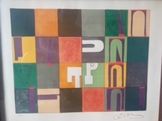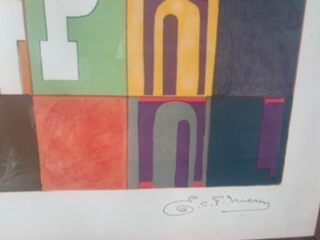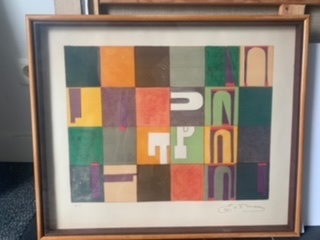 Prachtige kleurenlitho van de kunstenaar Edouard L.T. Mesens. Het werk met als titel Alphabet meet 48 x 58 cm en is mooi ingelijst in een houten kader. Op de voorkant met de hand gesigneerd en genummerd H.C.