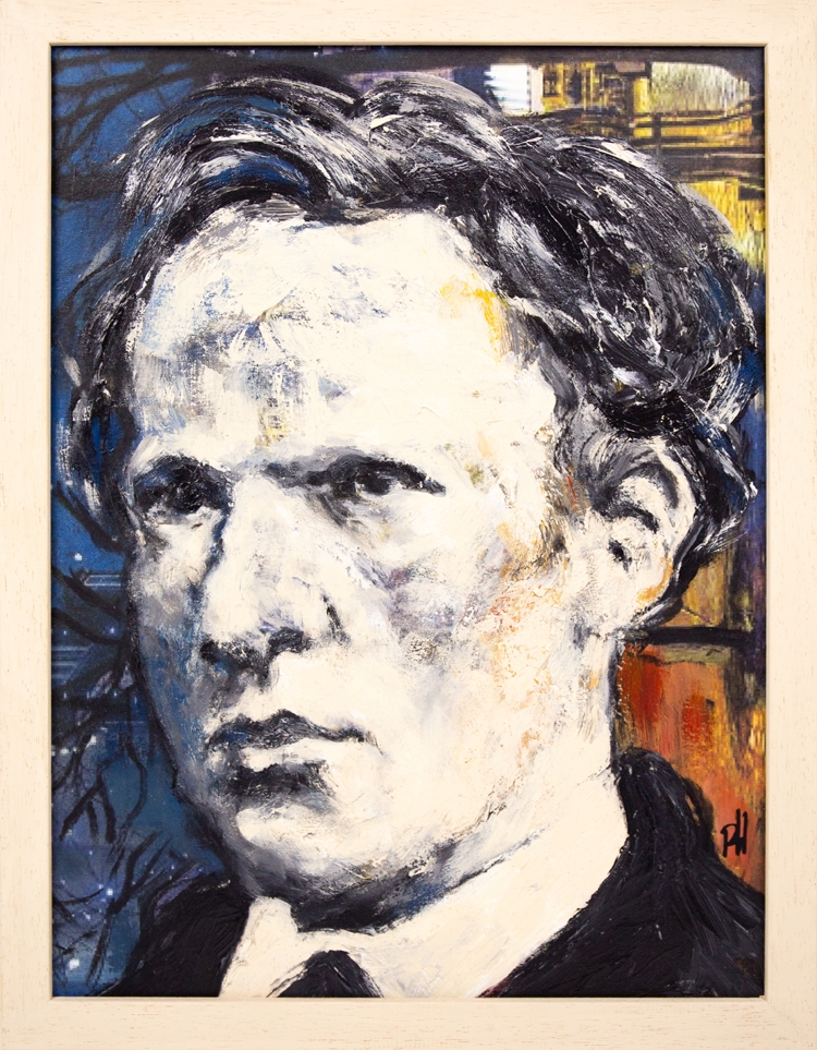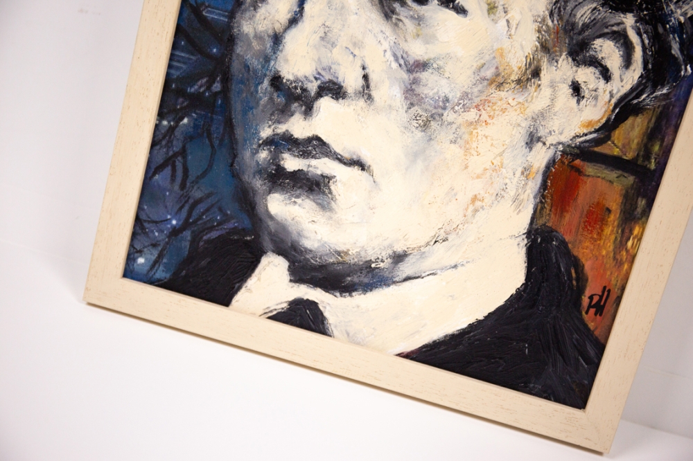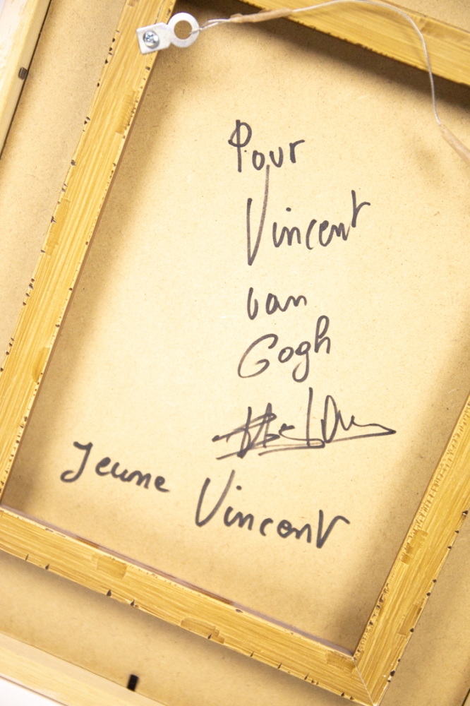 Uniek werk van Peter Heylands op houten paneel. Hierop staat een jonge Vincent Van Gogh afgebeeld. Met de hand gesigneerd door de kunstenaar (zowel op de voorkant als op de achterkant).