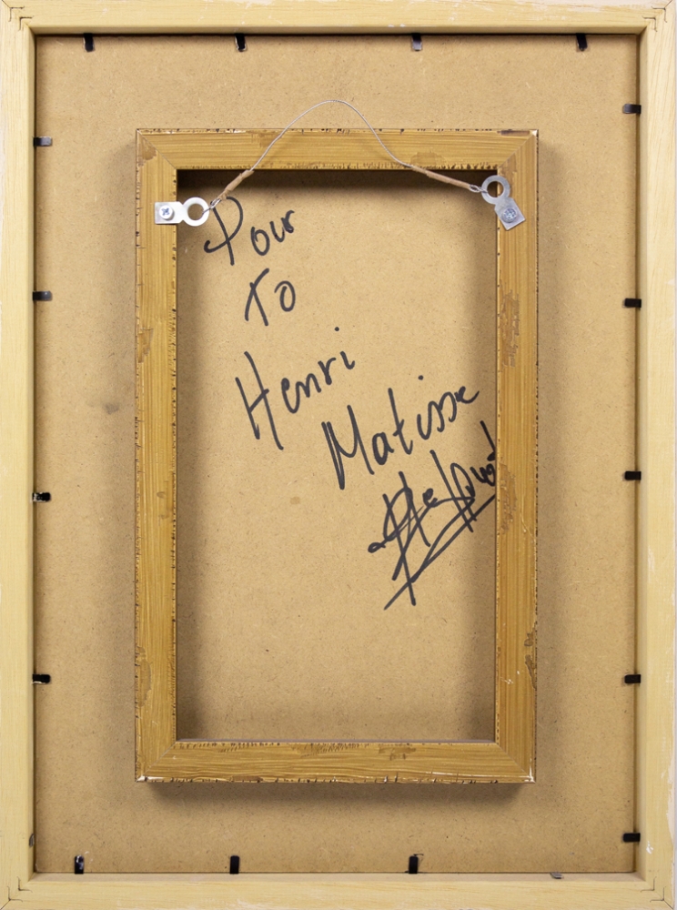 Uniek werk van Peter Heylands op houten paneel. Hierop staat Herni Matisse afgebeeld. Met de hand gesigneerd door de kunstenaar (zowel op de voorkant als op de achterkant).
