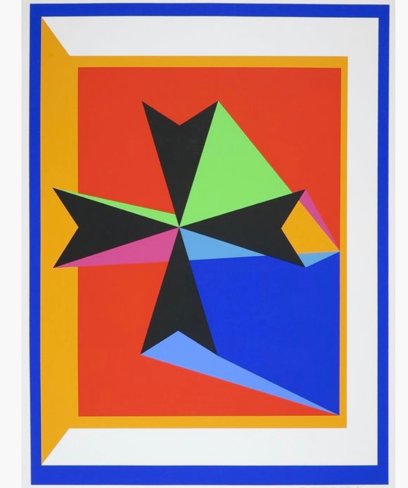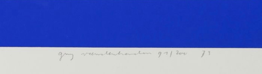 Zeer kleurrijke zeefdruk van de kunstenaar Guy Vandenbranden. Het werk met als titel compositie met ster is met de hand gesigneerd en genummerd. Dit in een oplage van 200 exemplaren waarvan dit nummer 91 is.