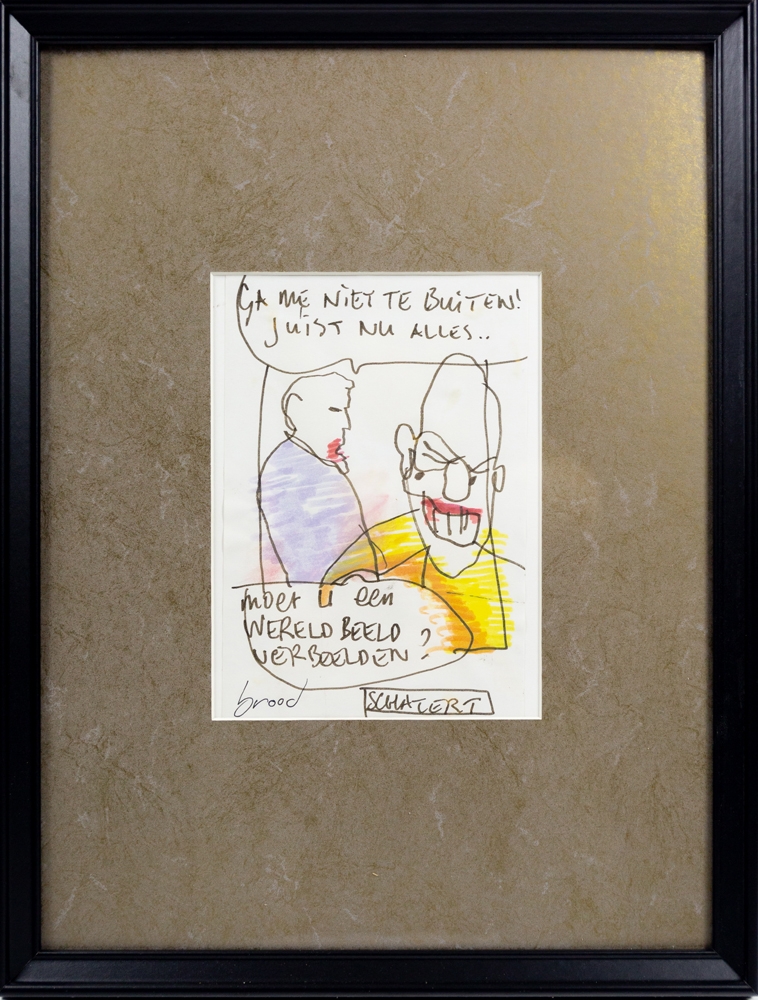 Het werkje is ingekaderd, zowel werk als kader verkeren in een uitstekende staat. Wordt afgeleverd met een certificaat van het Herman Brood Museum.