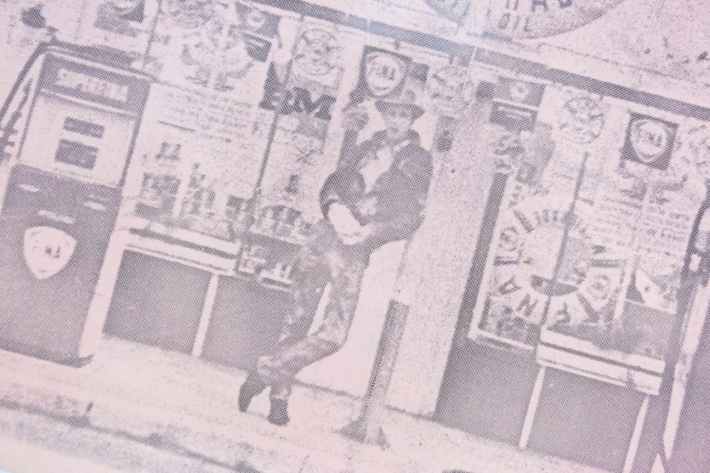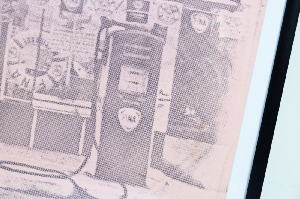 Op de foto ziet men Hugo Heyrman aan het tankstation in Zwijndrecht. De foto is genomen door Panamarenko.