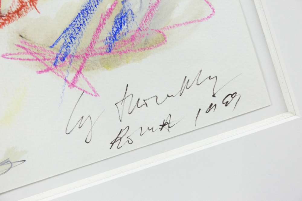 Een originele tekening met gouache en waterverf van Amerikaanse kunstenaar Cy Twombly (1928-2011) uit de periode 1959. Het werk is getiteld Roma en gesigneerd door de kunstenaar.