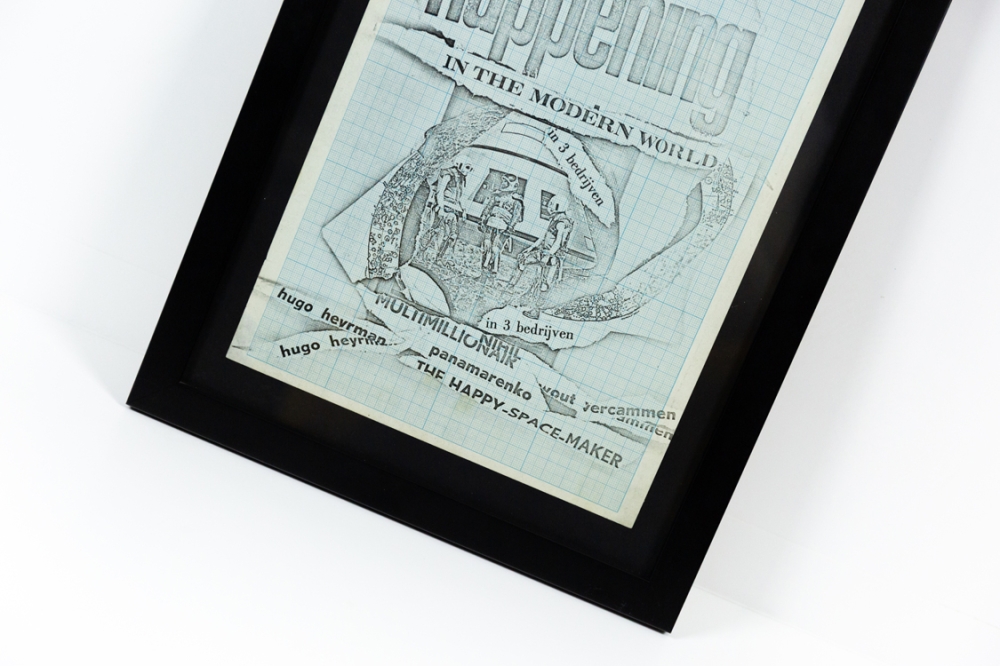 Panamarenko start zijn carrière in de jaren 60 als gangmaker van verschillende happenings, ludieke straatoptredens die hij in het centrum van Antwerpen orkestreert. Dit is één affiche voor dergelijke happening, in Antwerpen 1965.