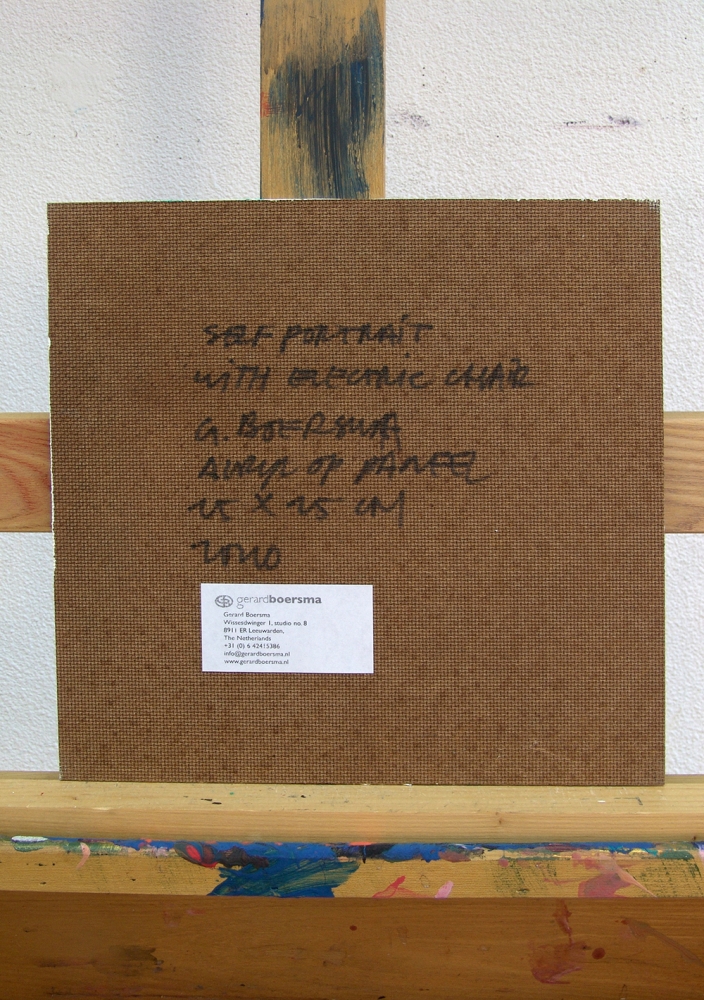 Gerard Boersma staat bekend om zijn schilderijen van mensen die naar bekende schilderijen kijken in musea. Dit werk van 25 x 25 cm toont de kunstenaar zelf kijkend naar een schilderij van een elektrische stoel van Andy Warhol. Het werk dateert uit 2020 en is gemaakt met acryl op masonite. Gesigneerd op achterkant. Het schilderij is voorzien van een label van de kunstenaar en wordt geleverd met certificaat van echtheid. Over de kunstenaar: Gerard Boersma werkt al 20 jaar als international schilder en is bekend om zijn eigen stijl van realistisch schilderen. Zijn schilderijen worden wereldwijd verzameld (6 continenten, 30 landen). In 2018 toonde hij zijn werk samen met Warhol, Haring, Banksy en anderen op een groepstentoonstelling bij zijn galerie in Frankrijk. Hij woont en werkt in Leeuwarden, Nederland