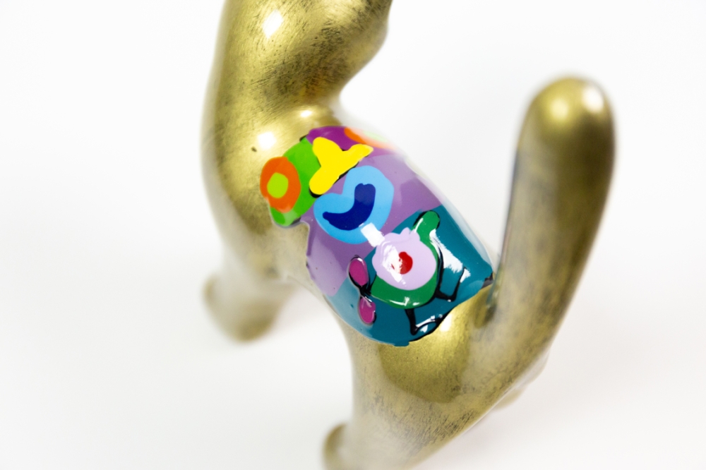 Sculptuurtje uit kunsthars van Hannes D'Haese met op de rug een unieke beschildering van Hannes in acrylverf.