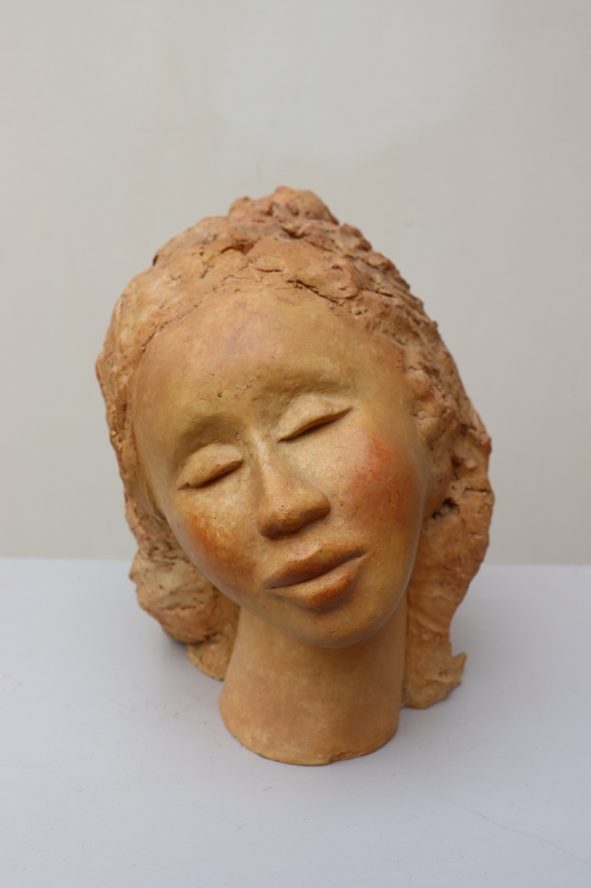 Naast haar sculpturen in diverse afmetingen exposeert ze ook schilderijen op doek en paneel in gemengde technieken.