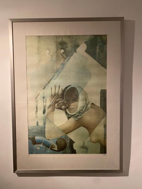 Zeer mooi en typerend werk voor Pol Mara. Het werk is rechtsonder met de hand gesigneerd en linksonder genummerd E.A. De litho meet 77 x 51,5 cm en is ingelijst in een aluminium kader met afmeting 101 x 72,5 cm.